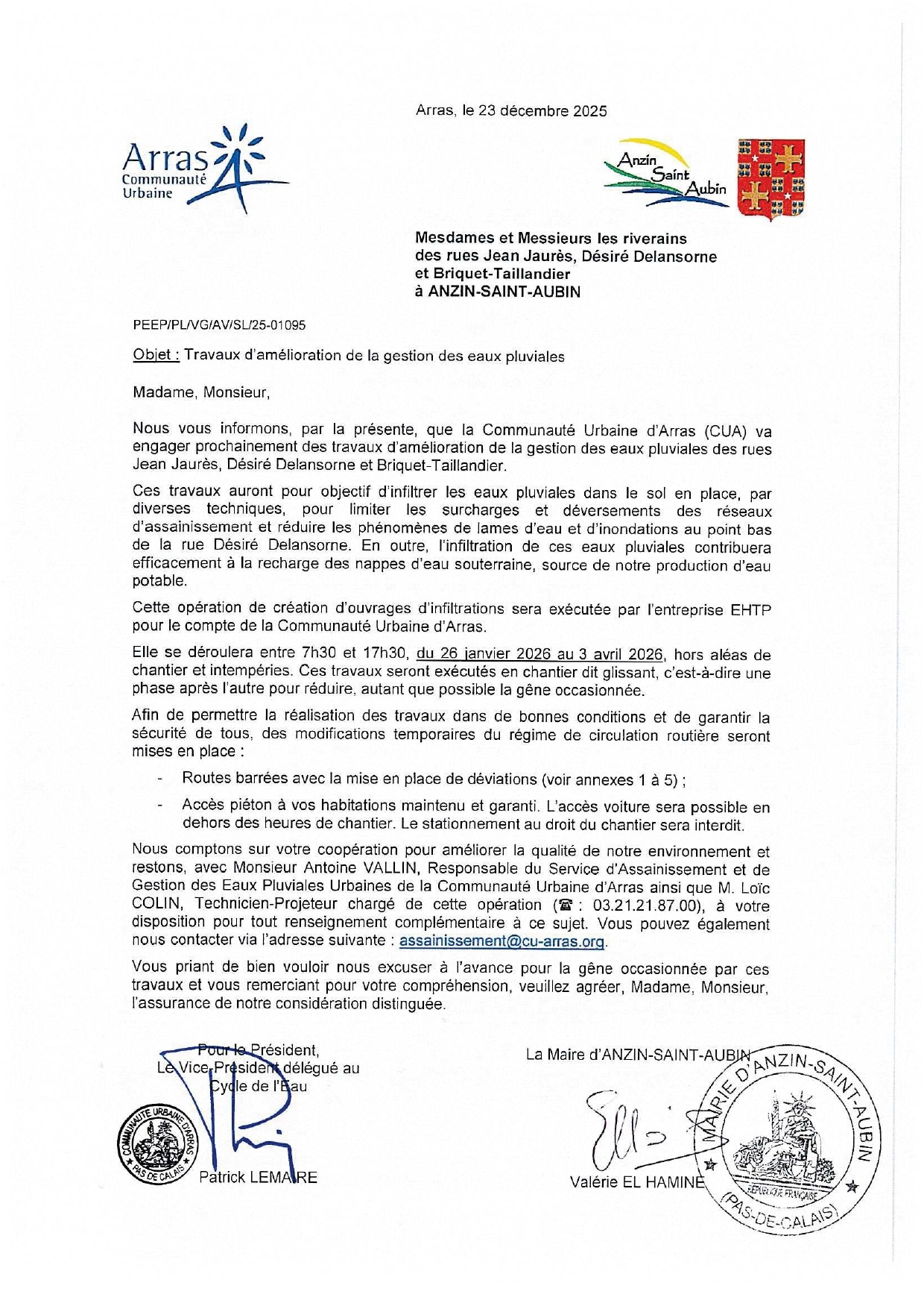 travaux d’amélioration de la gestion des eaux pluviales